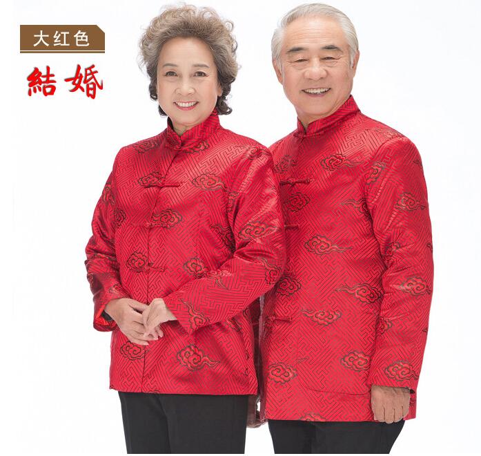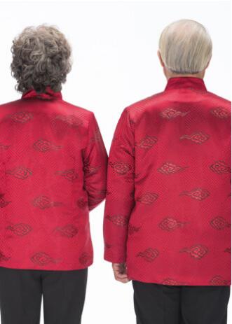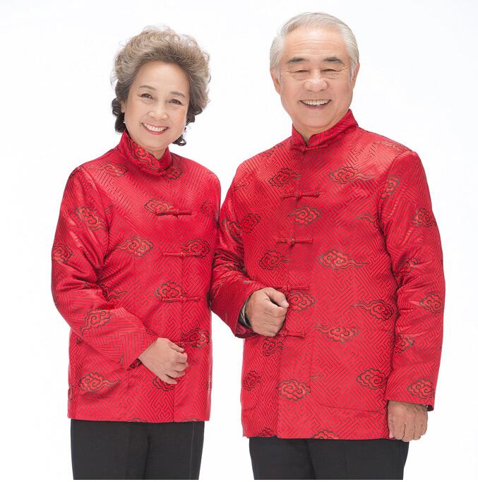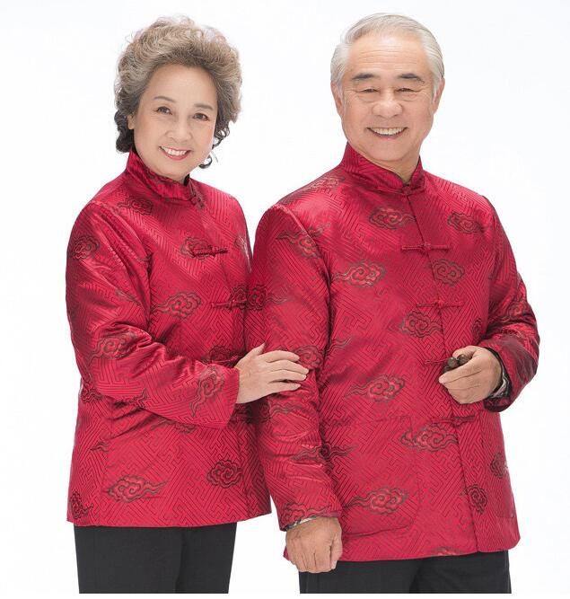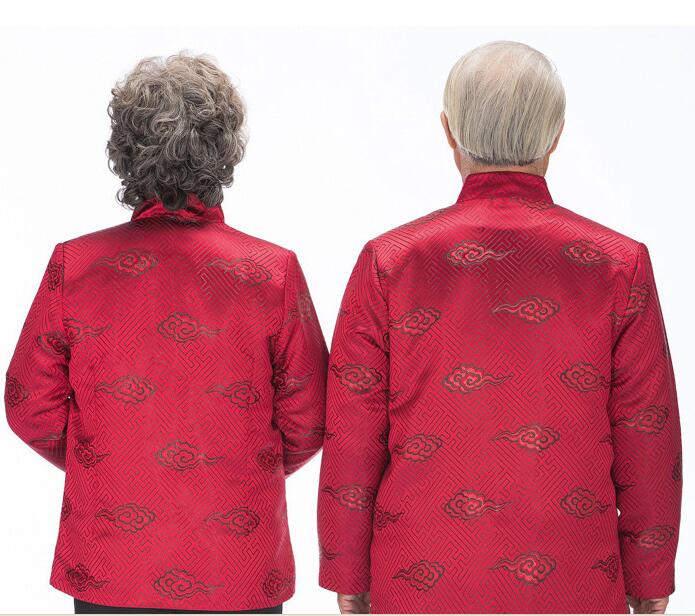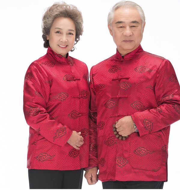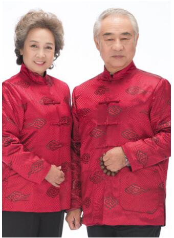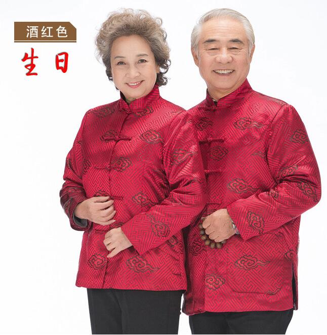哥仨行gesaxing 祥云华服 秋冬中老年男女士祥云情侣装 立领中式祝寿金婚外套 唐装酒红色