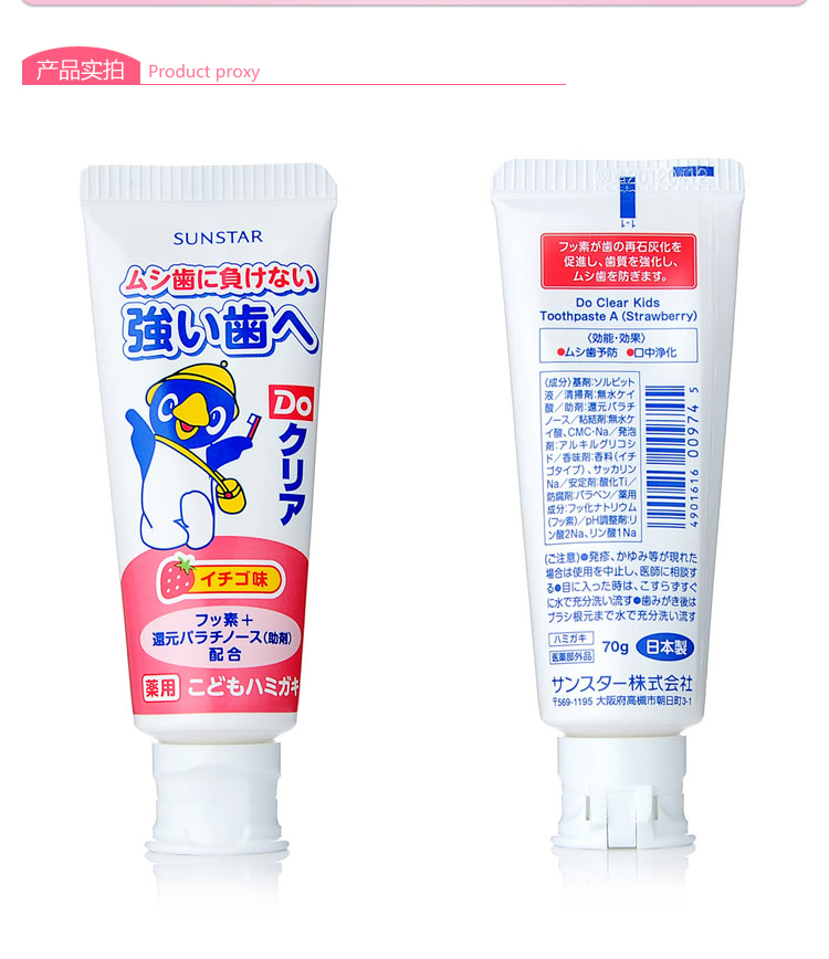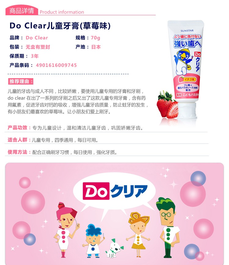 皓乐齿(Ora2) DoClear儿童 牙膏 70g (草莓味 为2-8岁儿童适用设计)