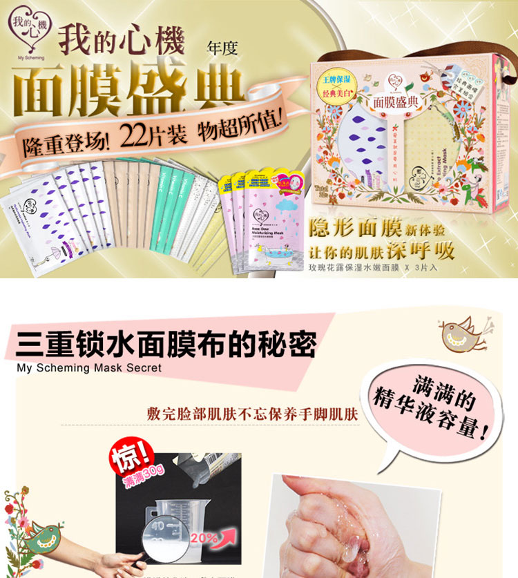 商品名称: 我的心机 台湾面膜盛典礼盒装22片 面膜贴补水美白保湿
