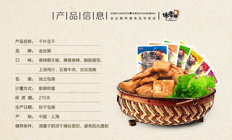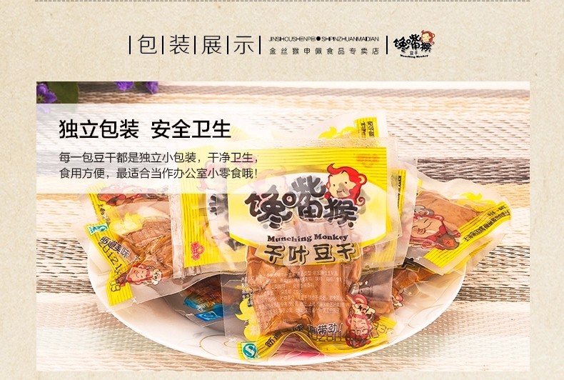 当前位置:首页 > 美食特产>各类小吃>金丝猴馋嘴猴千叶豆干500g小吃零食小包装豆腐干制品麻辣美食混搭