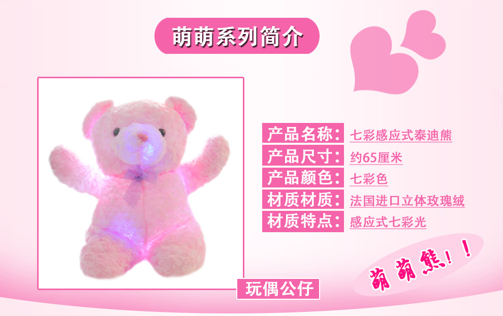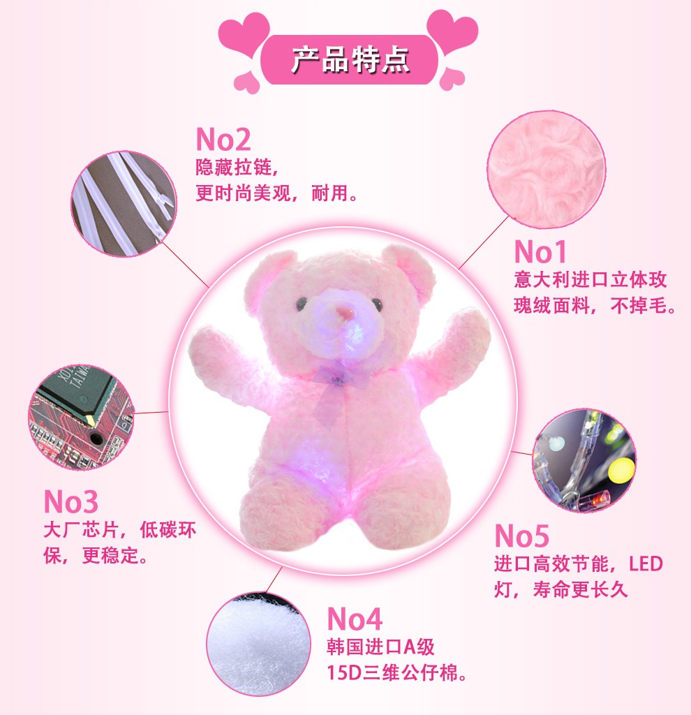 商品名称:发光抱枕枕头 升级版泰迪熊公仔玩偶抱抱熊创意节日礼物女生实用礼品毛绒玩具布娃娃 情人节礼物 泰迪熊