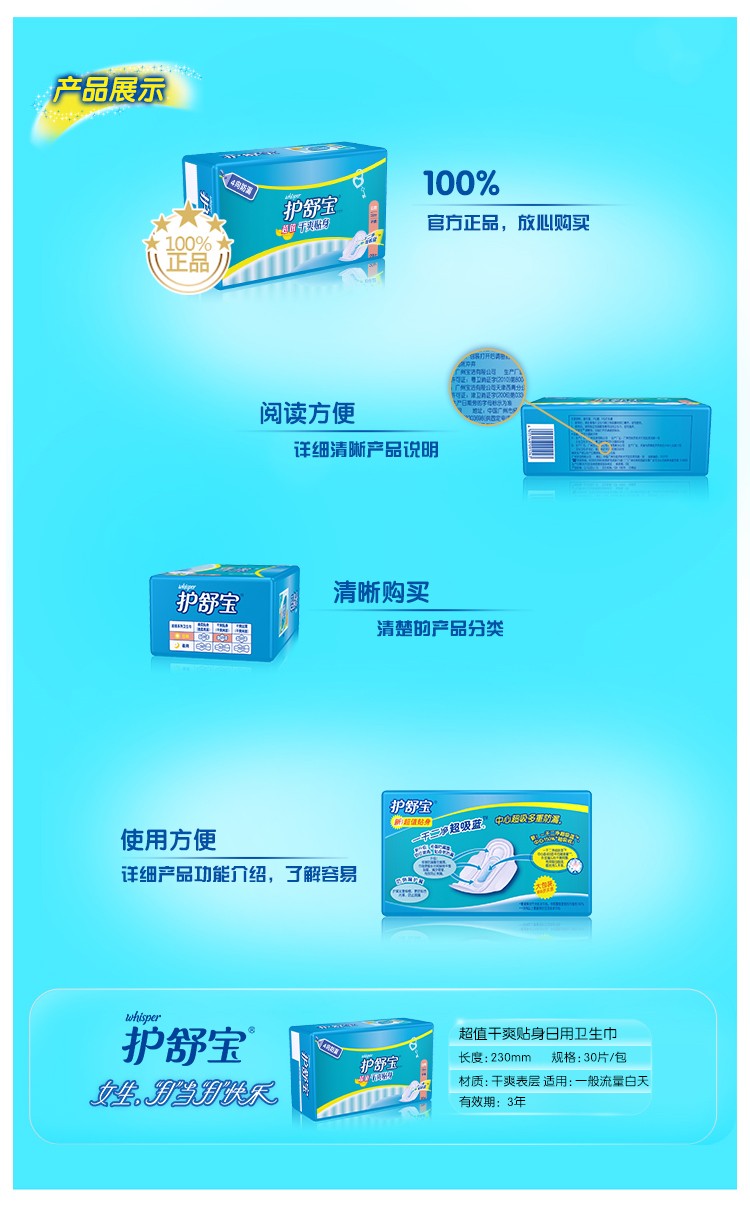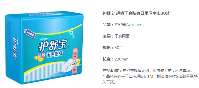 商品名称: 护舒宝 超值干爽贴身日用卫生巾 30片