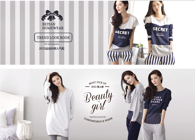 睡衣女春2015长袖春秋纯棉睡
