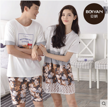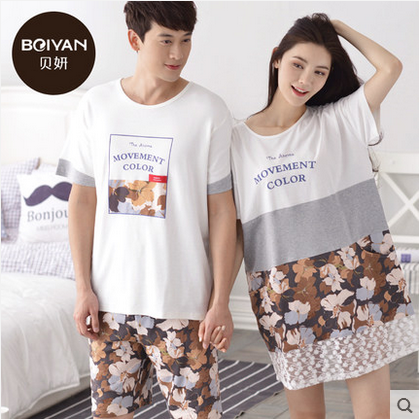 2套价贝妍夏季新款情侣睡衣女纯