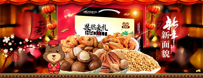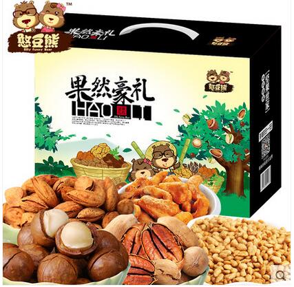 各式礼盒>憨豆熊_坚果礼盒 零食干果大礼包特产节日送礼1664g共8袋装