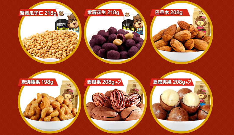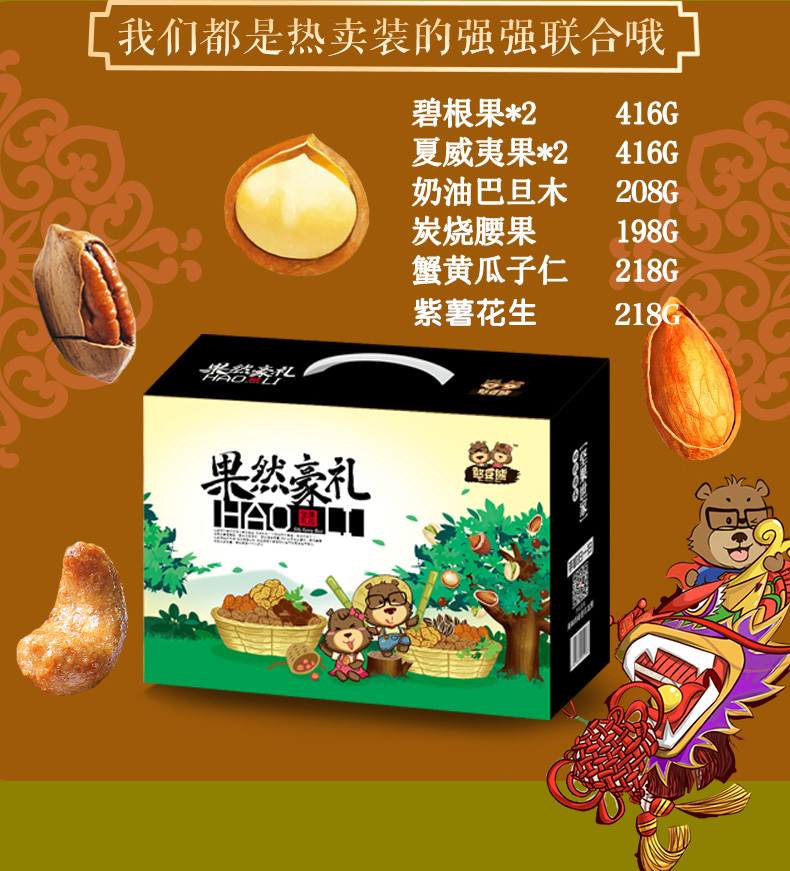 憨豆熊_坚果礼盒 零食干果大礼包特产节日送礼1664g共8袋装
